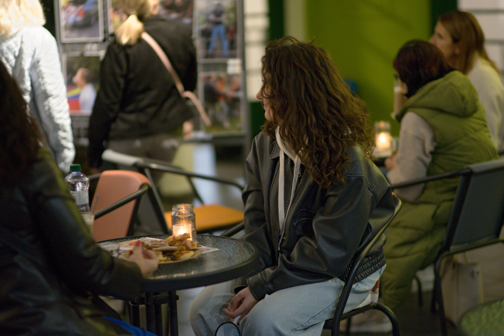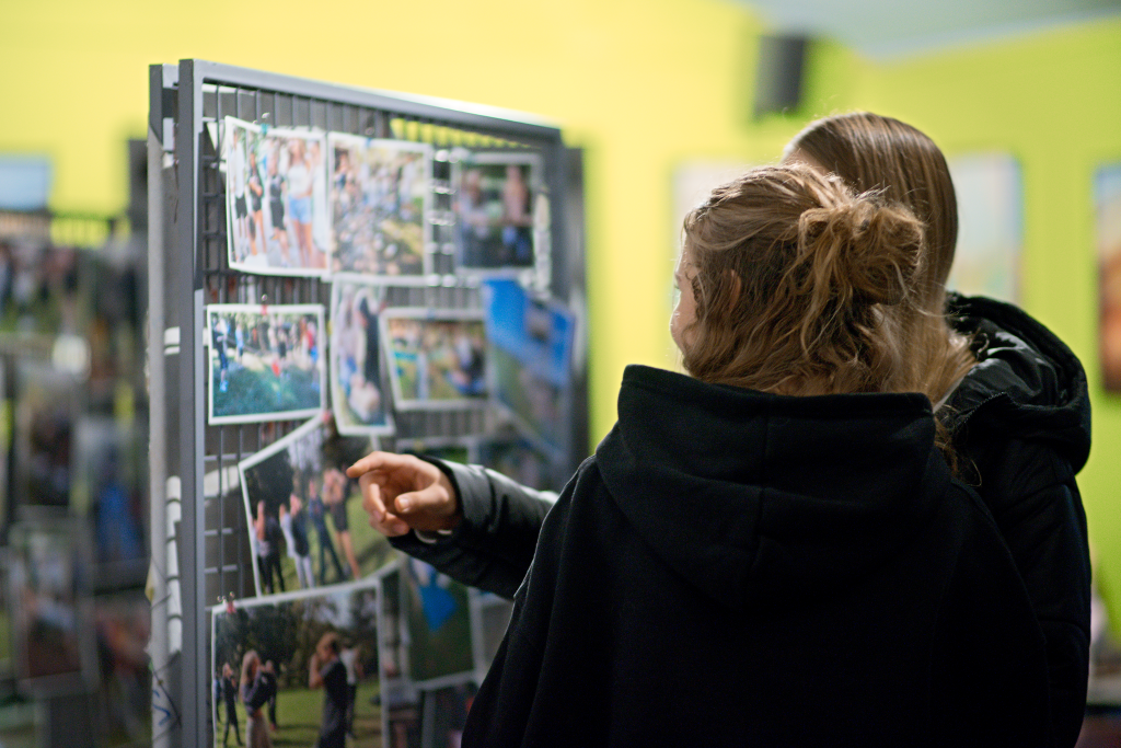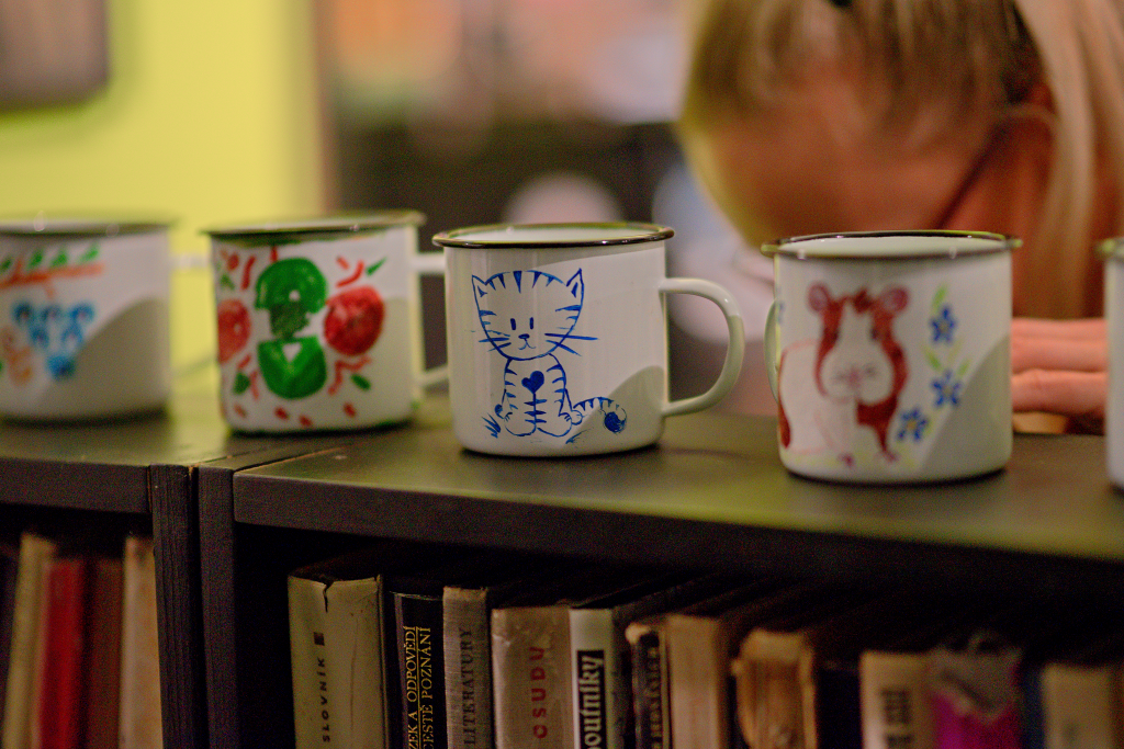 V kavárně kina si mohli návštěvníci prohlédnout fotografie z mnoha aktivit, které na adaptačních kurzech probíhaly, některé hry nebo malou výstavku žákovských výrobků. Nechybělo zde ani drobné pohoštění připravené našimi učiteli, které přispělo k navození příjemné atmosféry.