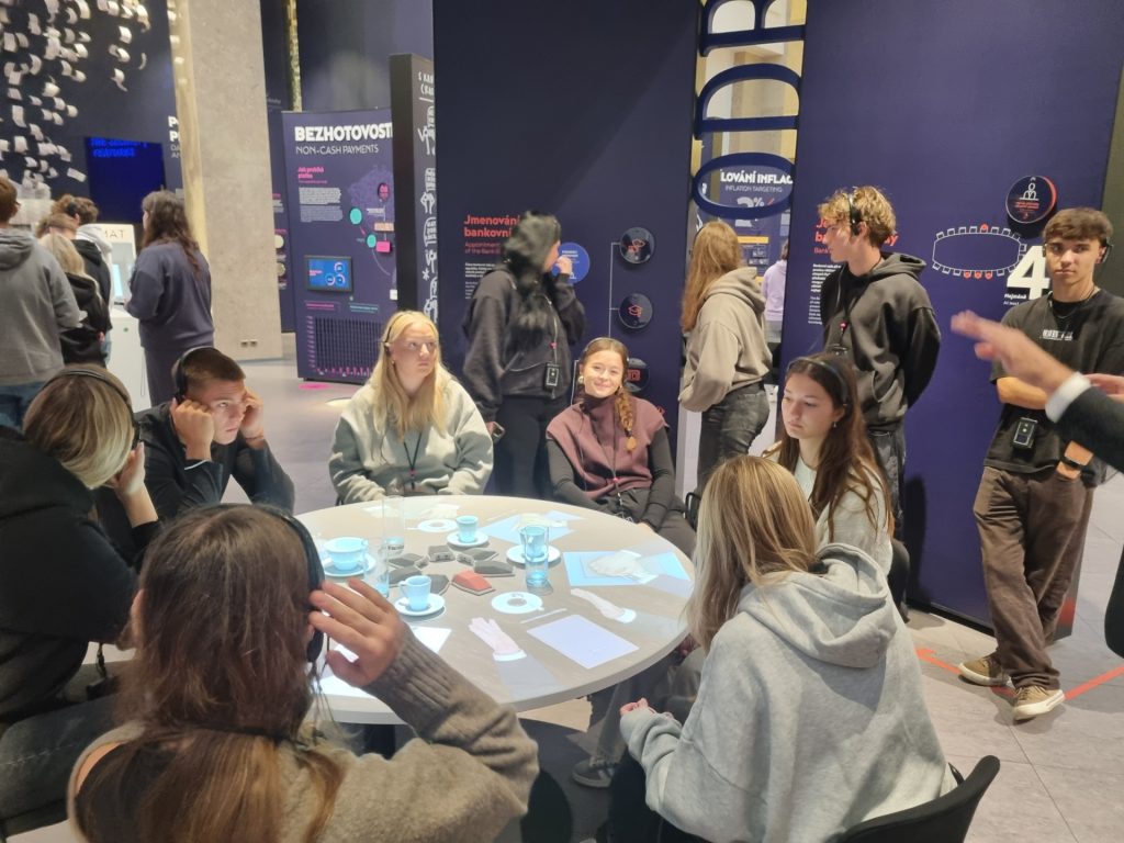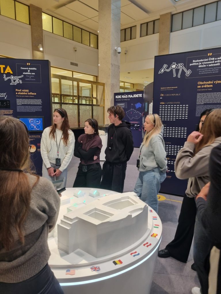 Během návštěvy si měli žáci možnost prohlédnout expozici o historii české měny, vyzkoušet si simulace měnové politiky a pochopit, jak ČNB ovlivňuje ekonomiku státu. Interaktivní přístup a praktické ukázky pomohly žákům lépe porozumět nejen teoretickým znalostem, ale také reálnému fungování finančního systému.