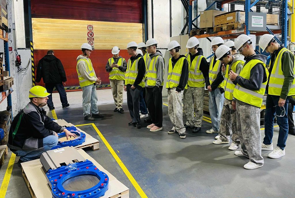 Poté následovala technologická a montážní část, kde se žáci dozvěděli, co se s odlitky děje dál – jak probíhá opracování, kontrola a montáž hotových armatur. Pracovníci firmy ochotně vysvětlovali, jak se jednotlivé kroky propojují, aby výsledkem byl přesný, bezpečný a kvalitní výrobek, který obstojí v náročných podmínkách.