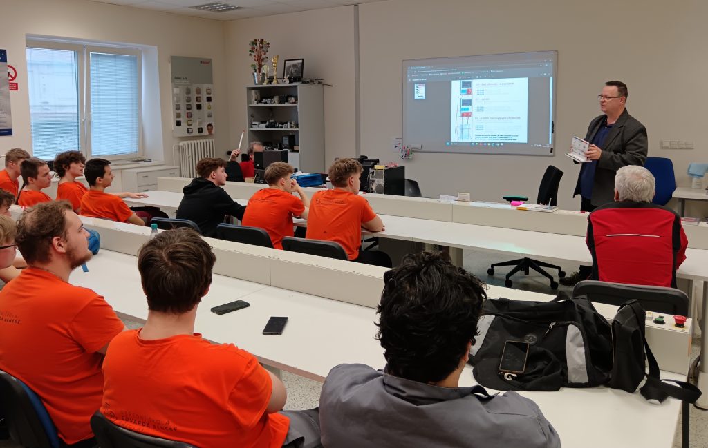 Erocomm představil studentům sortiment elektroinstalačního materiálu Ve středu 10. prosince 2025 představila společnost Erocomm (www.erocomm.cz) žákům 3. ročníku oboru Elektro–silnoproud a dalším zájemcům na DOV široký sortiment výrobků, které dodává na český trh prostřednictvím elektro velkoobchodů.