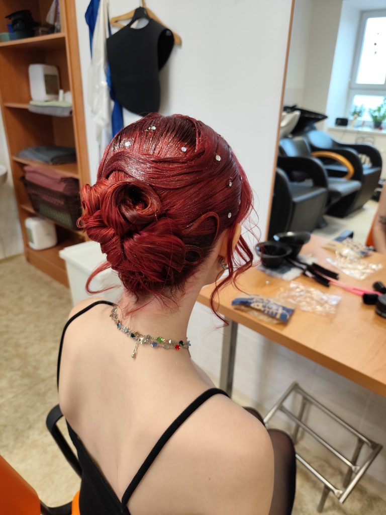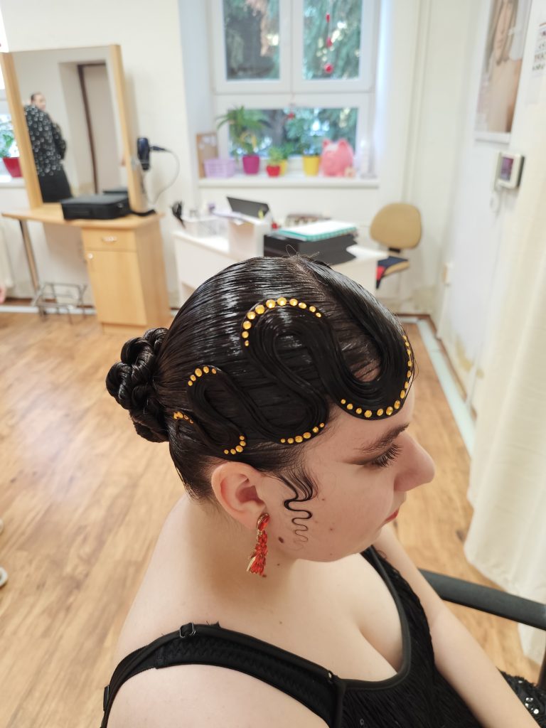 Dne 12. prosince 2025 se na naší škole uskutečnilo školní kolo Soutěže mladých kadeřníků určené pro žáky třetího ročníku. Letošní zadání přineslo skutečnou výzvu – vytvořit technicky náročný účes s latinskoamerickým nádechem. Soutěžní tvorba tak spojila precizní techniku s temperamentem, rytmem a elegancí, které jsou pro latinskoamerickou kulturu typické.